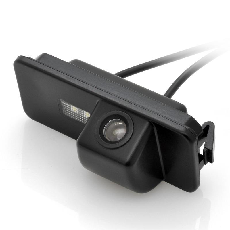 Camara de reversa original para vehiculos Chevrolet, instalada en la luz de la placa